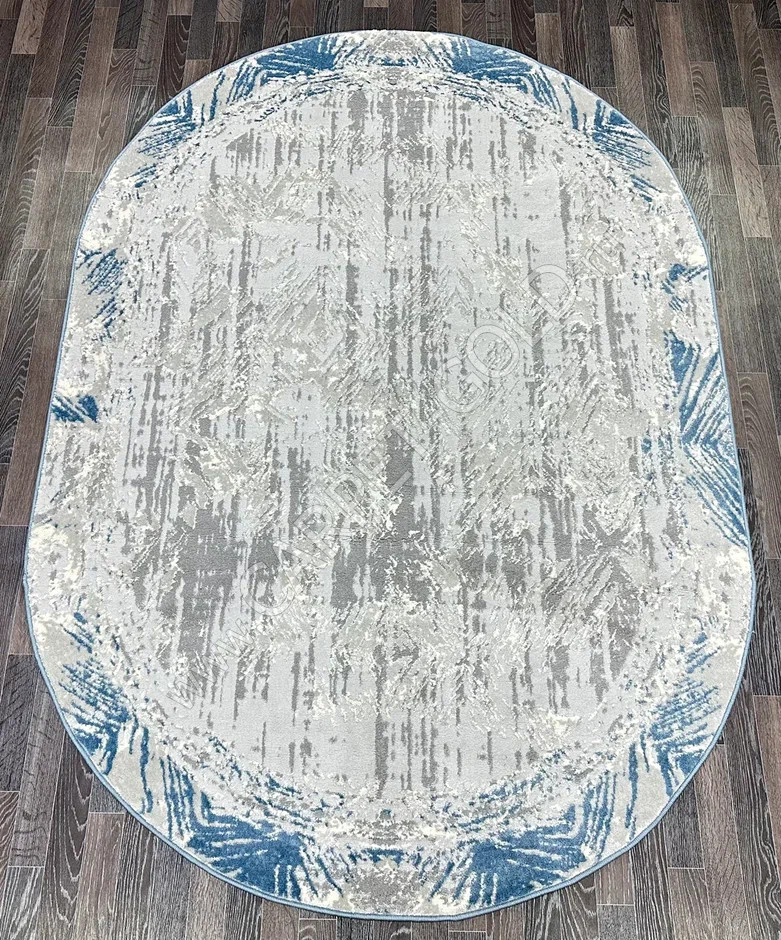 Ковер турецкий V135A Bojnord (PP Heatset Высокоплотный, серый, голубой) овальный