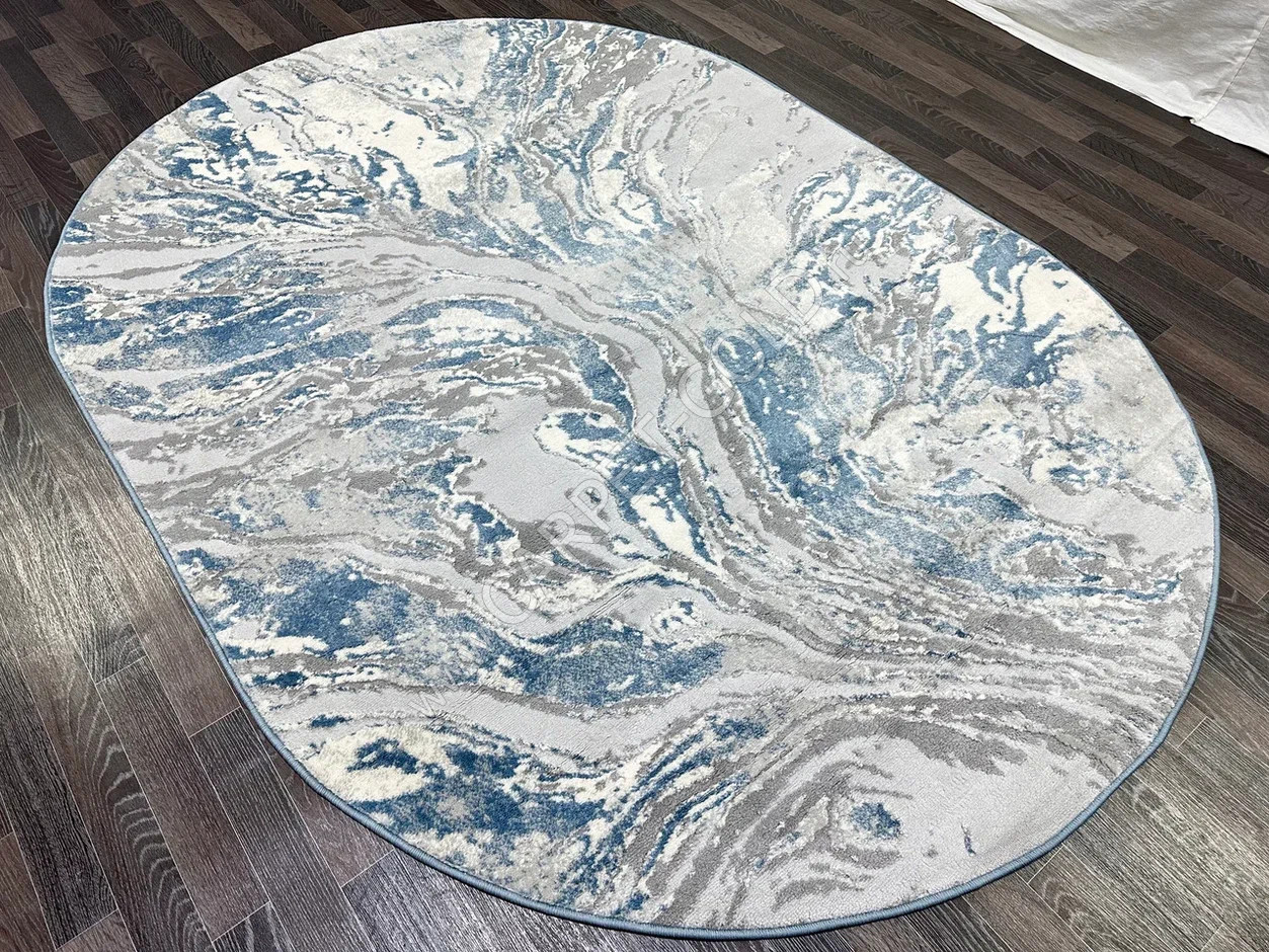 Ковер турецкий V136A Bojnord (PP Heatset Высокоплотный, серый, голубой) овальный